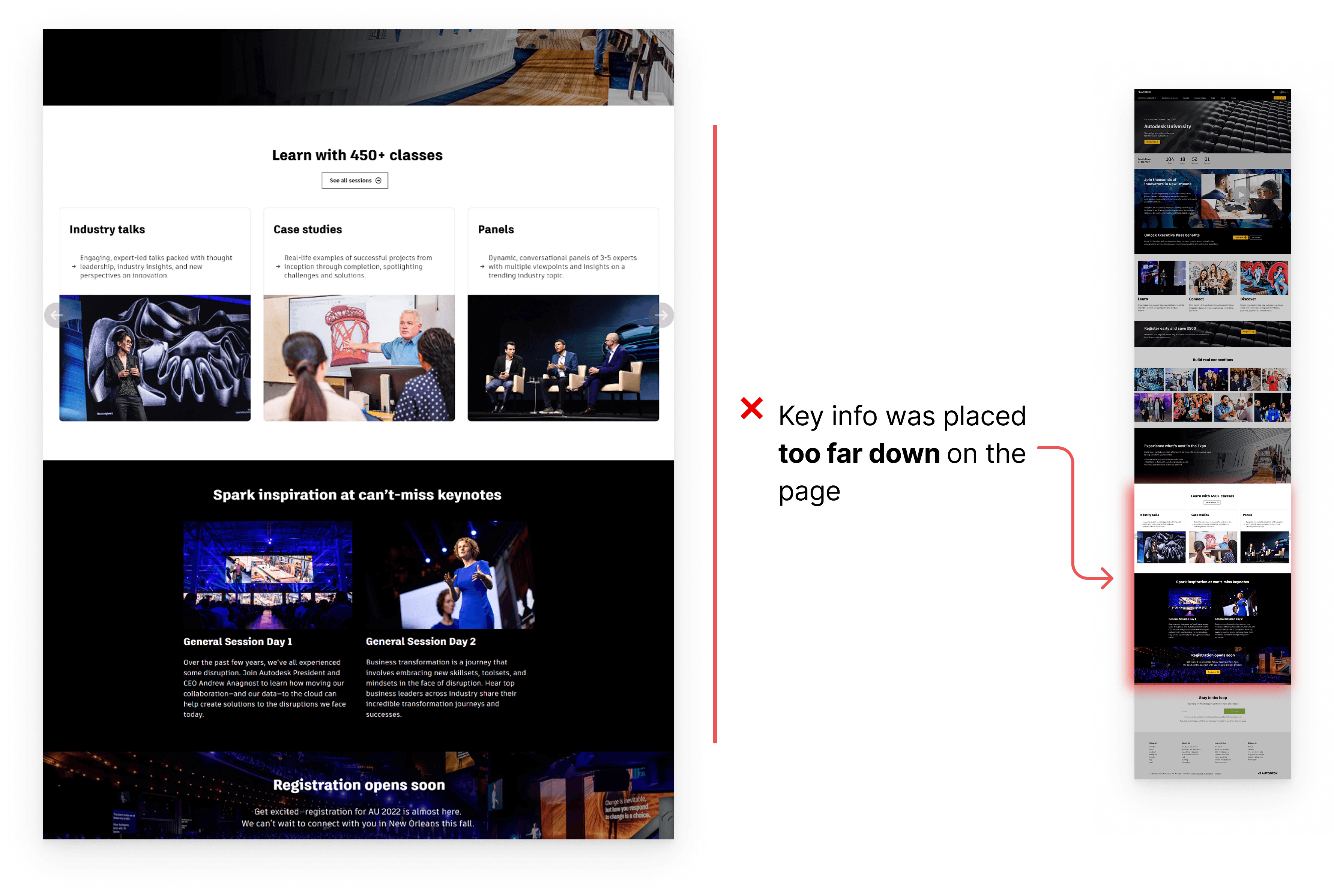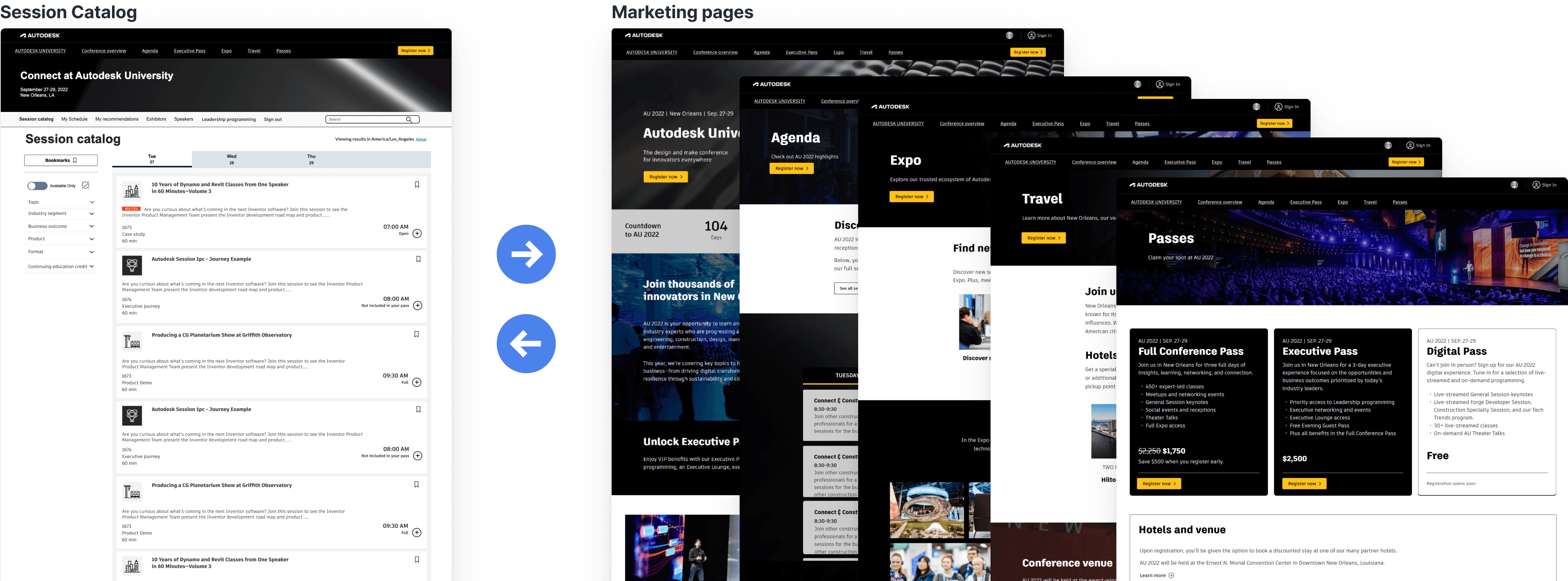 2. Attendees often jumped between catalog and marketing pages to plan their AU schedule.