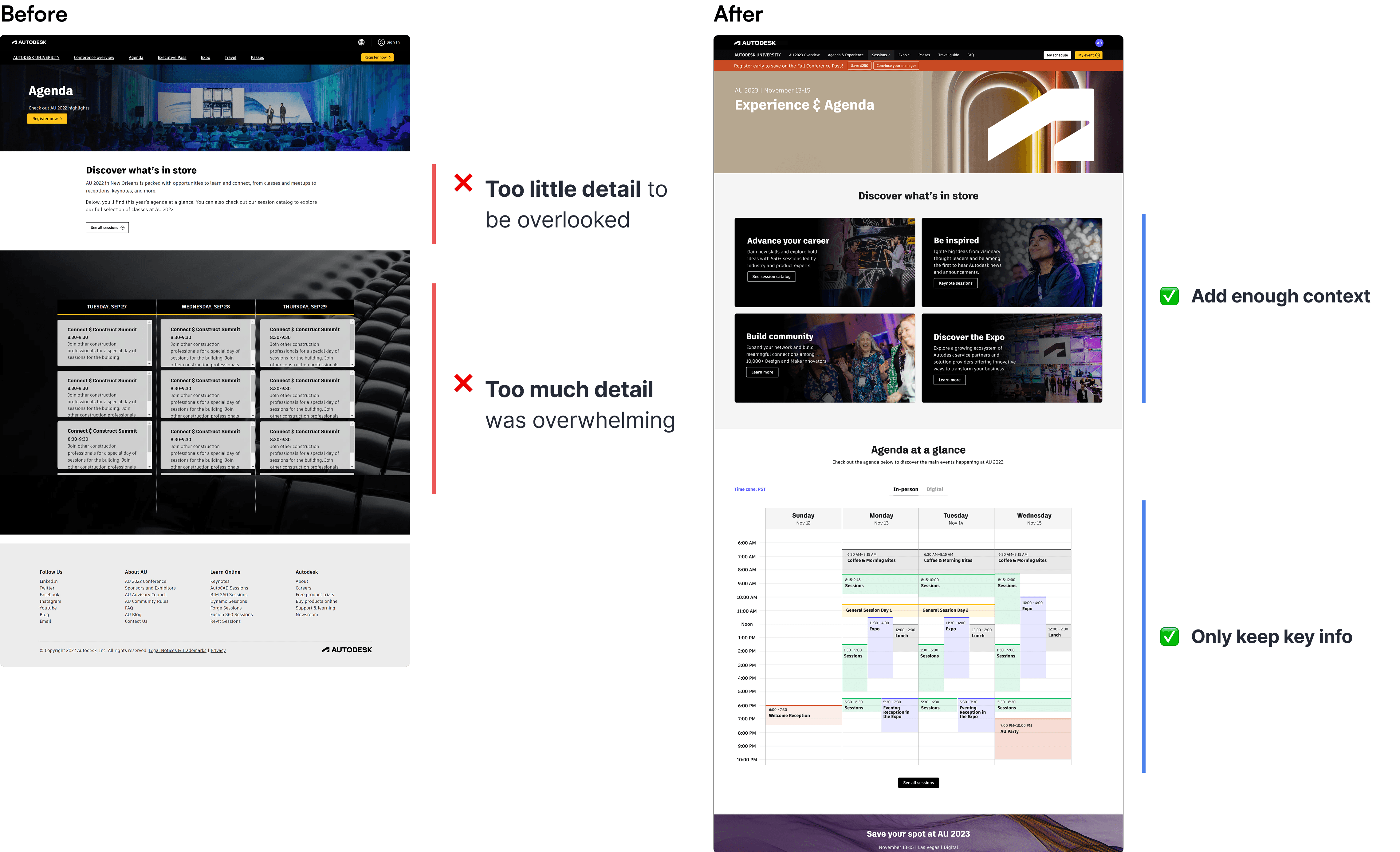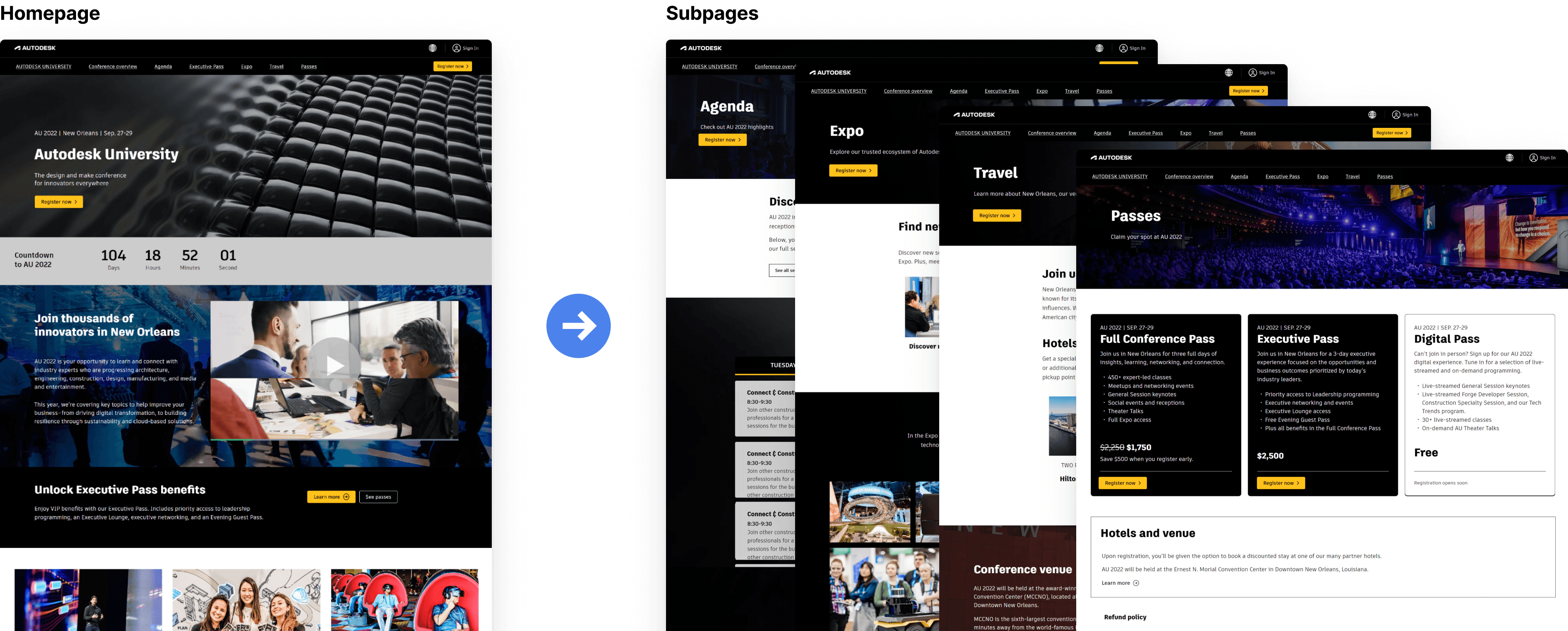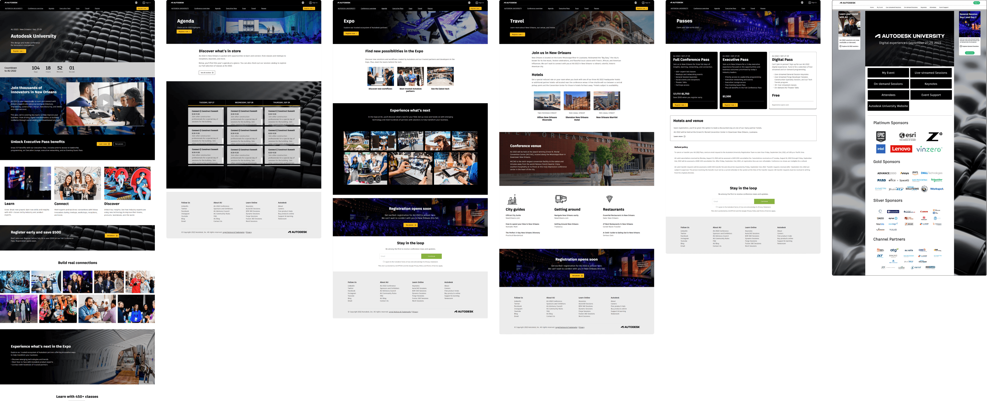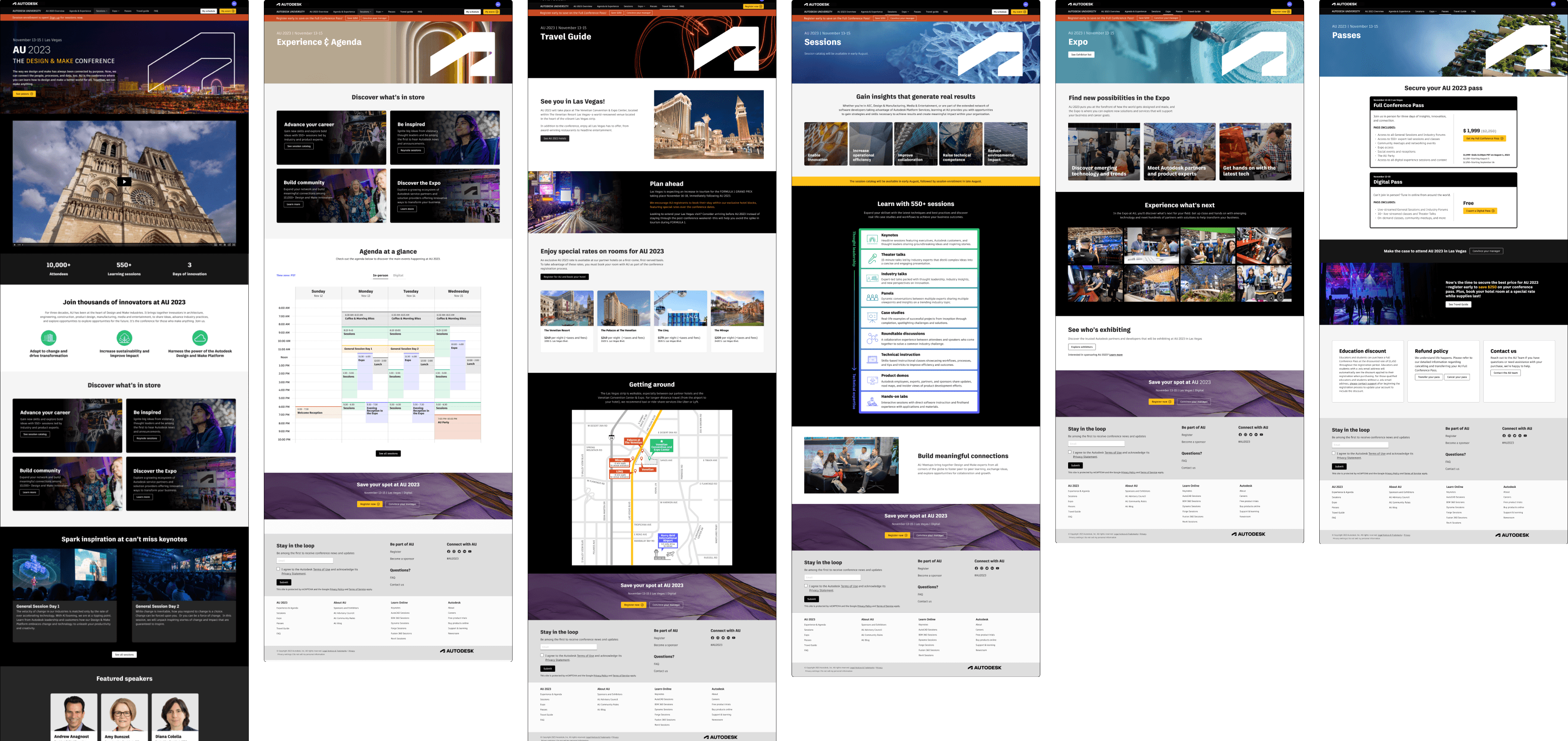 AU is a 3-day hybrid conference with 50,000+ attendees. The website was the central hub for event info, registration, sessions, and recordings.