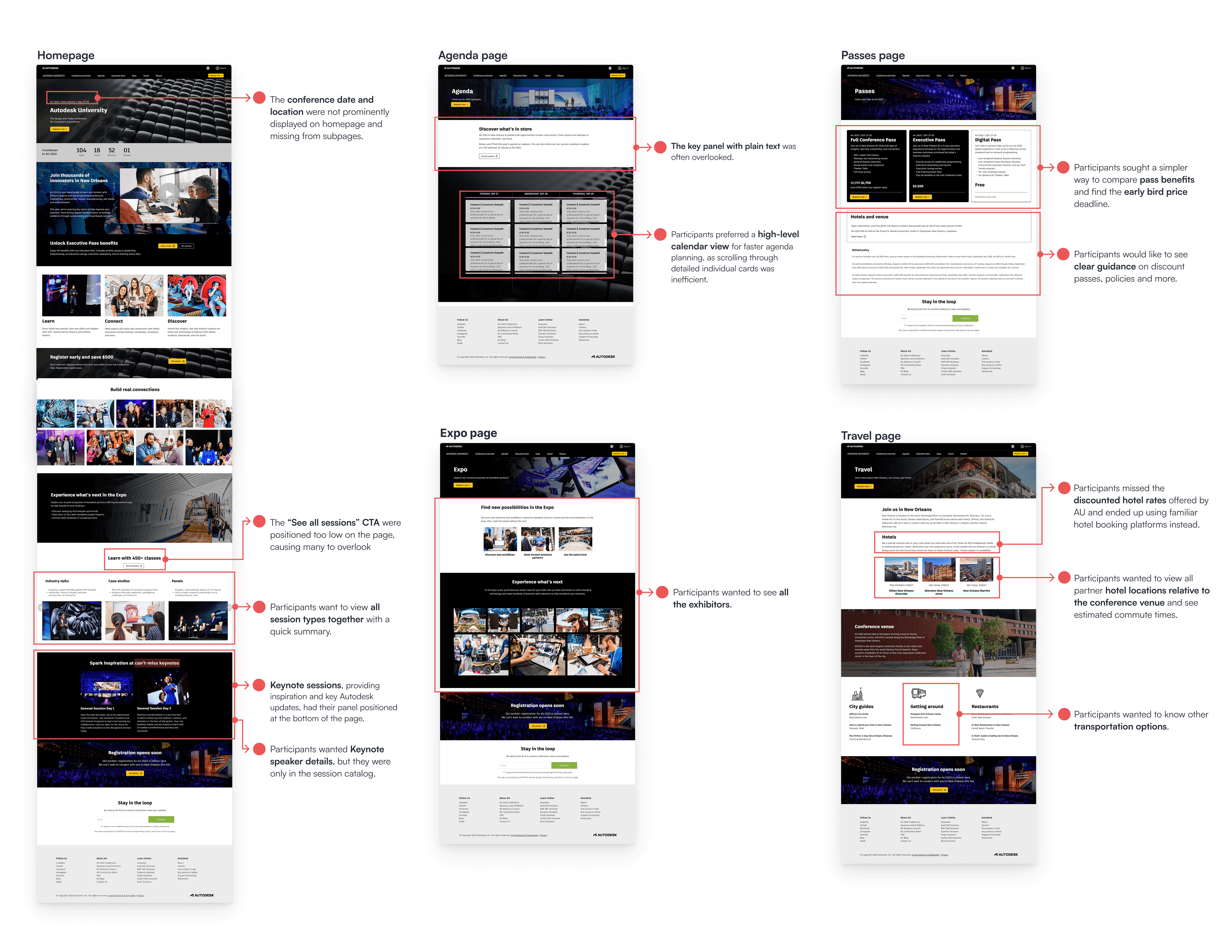 1. Attendees began on the homepage, then navigated to subpages for more details.