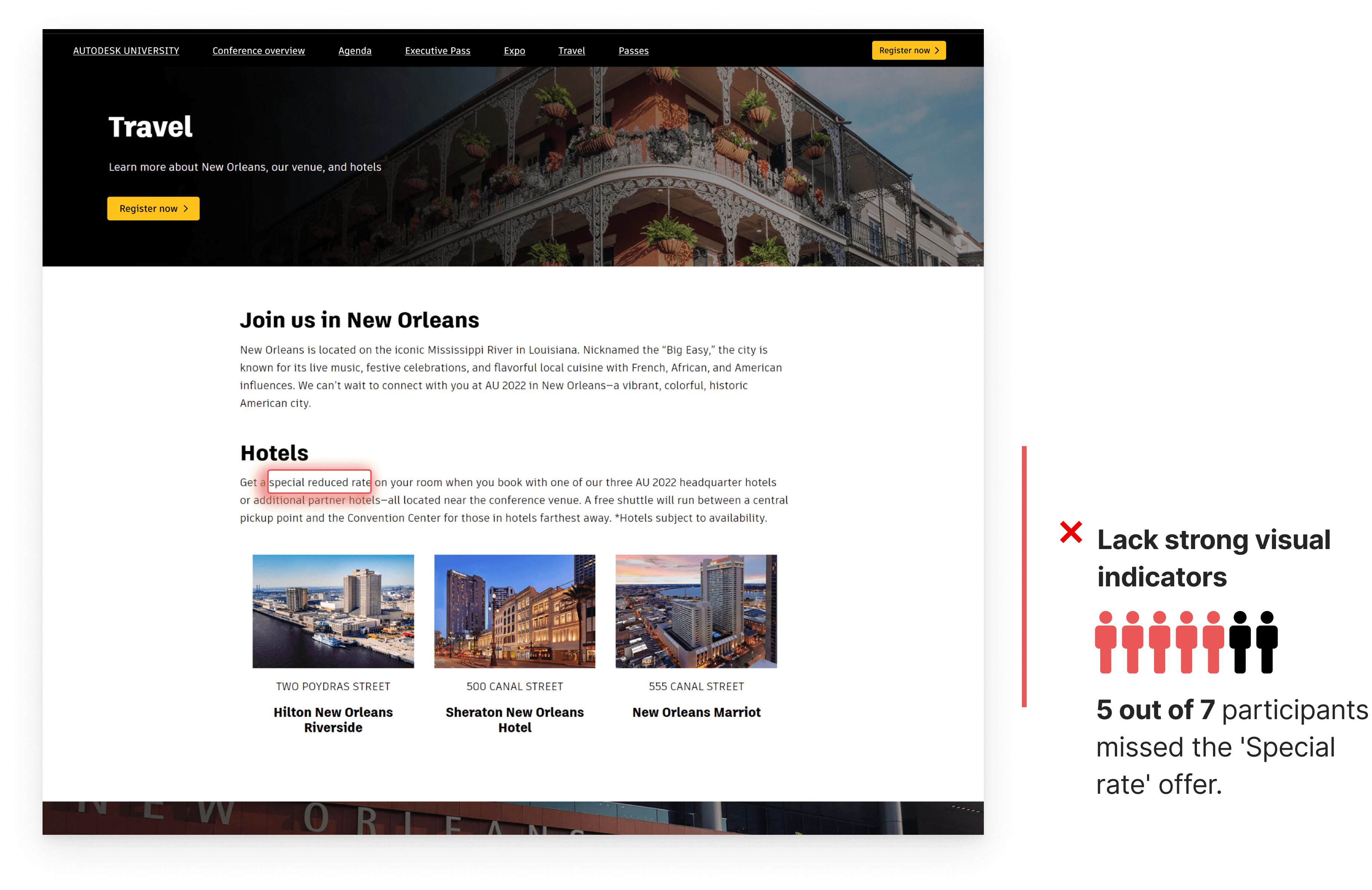 Conducted mixed-methods research with diverse participants to uncover attendee goals and pain points.