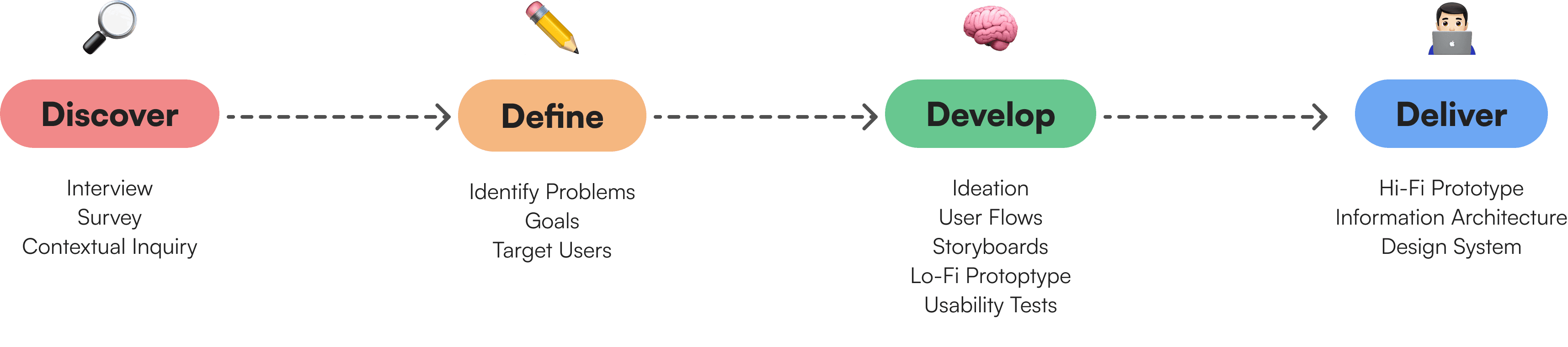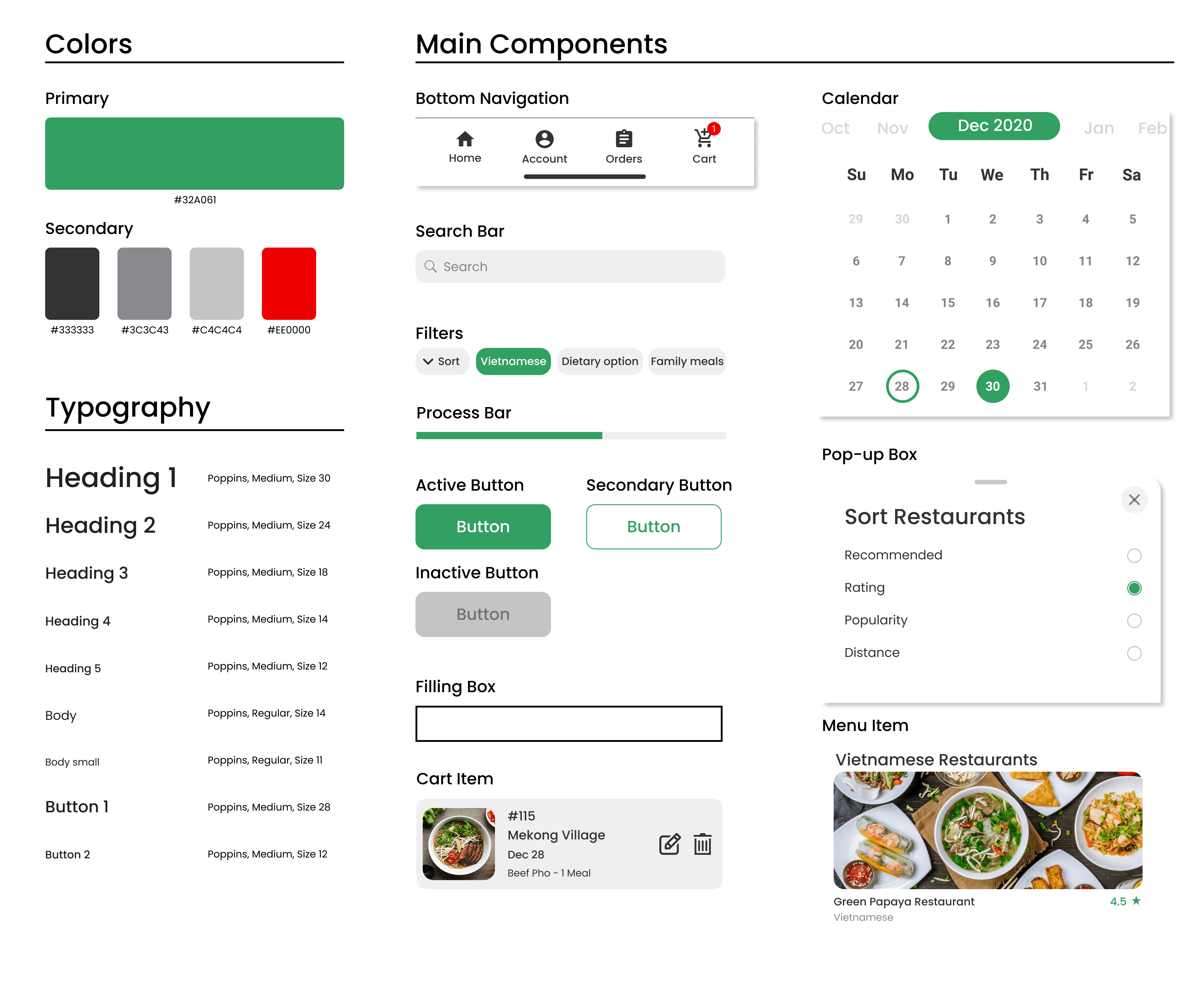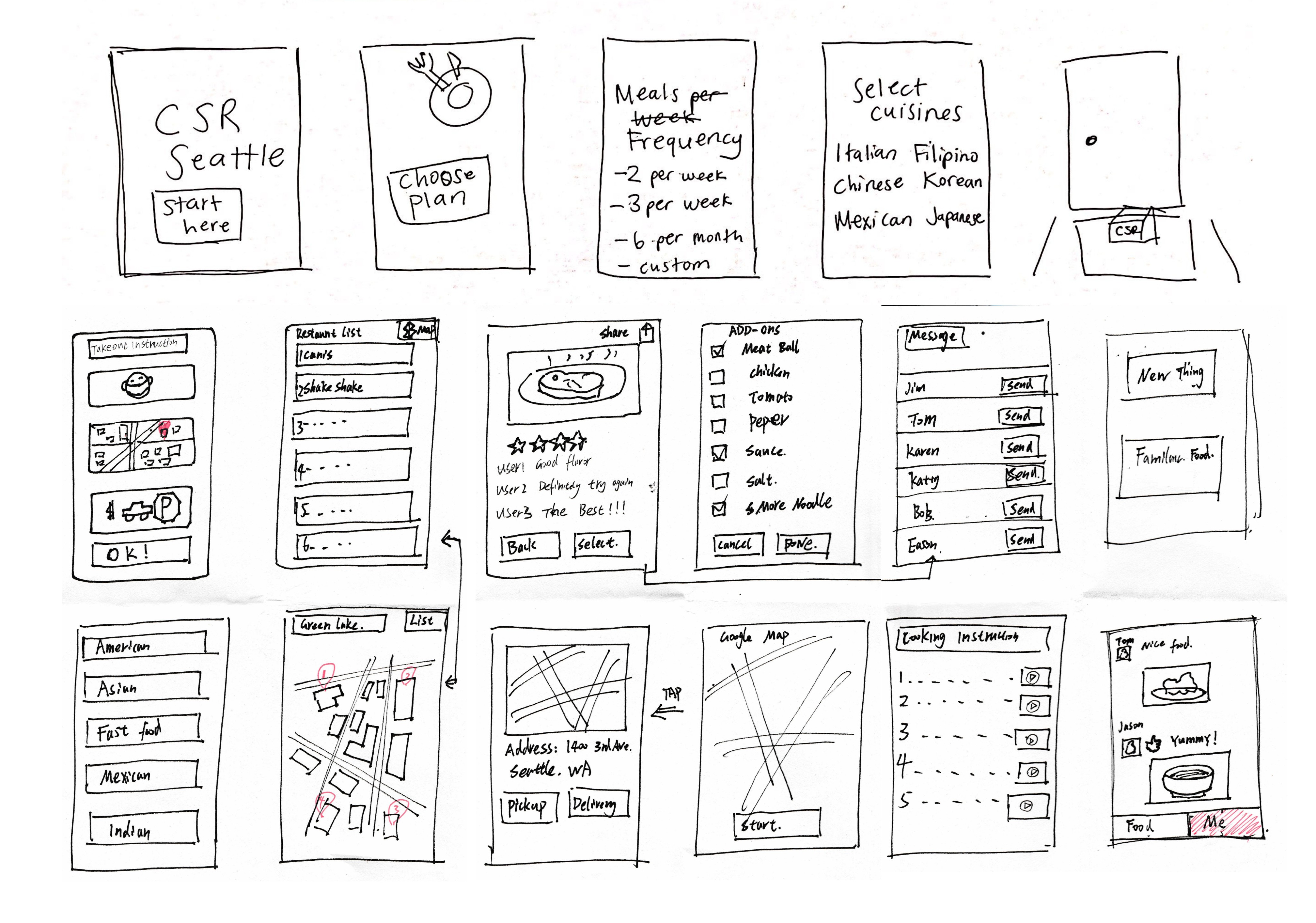 I explored business models, service blueprints, and platforms, ultimately choosing a mobile app integrating food ordering with meal subscriptions due to time constraints. Three usability tests refined the prototype.